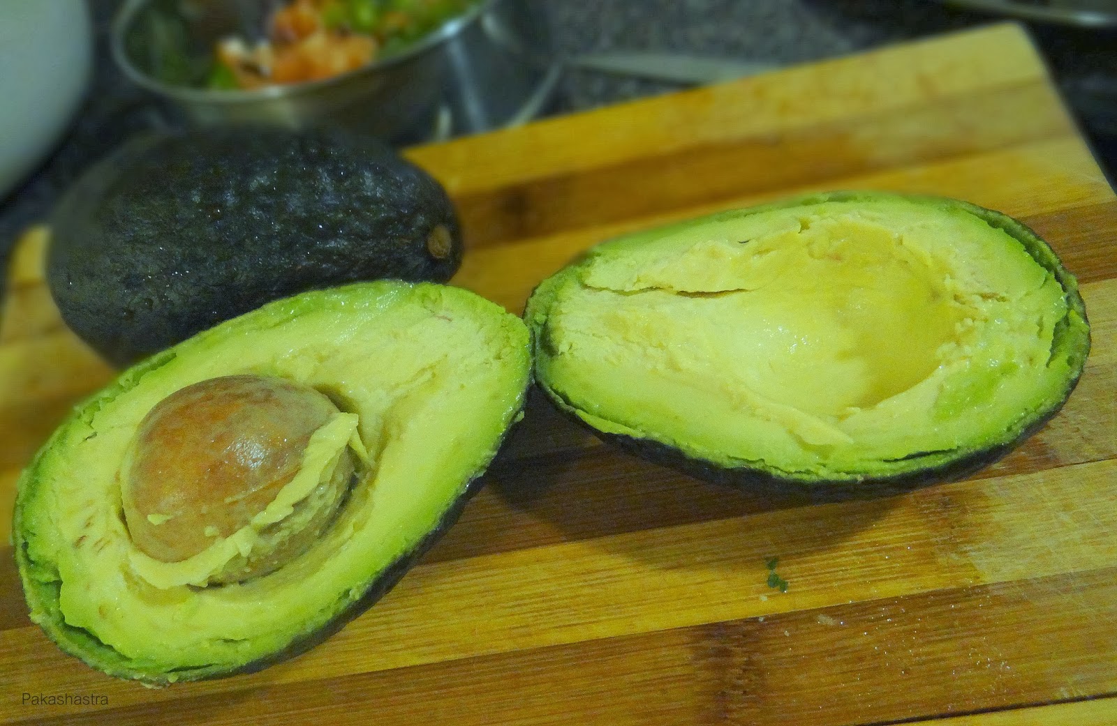 - Half the avocados vertically as shown.